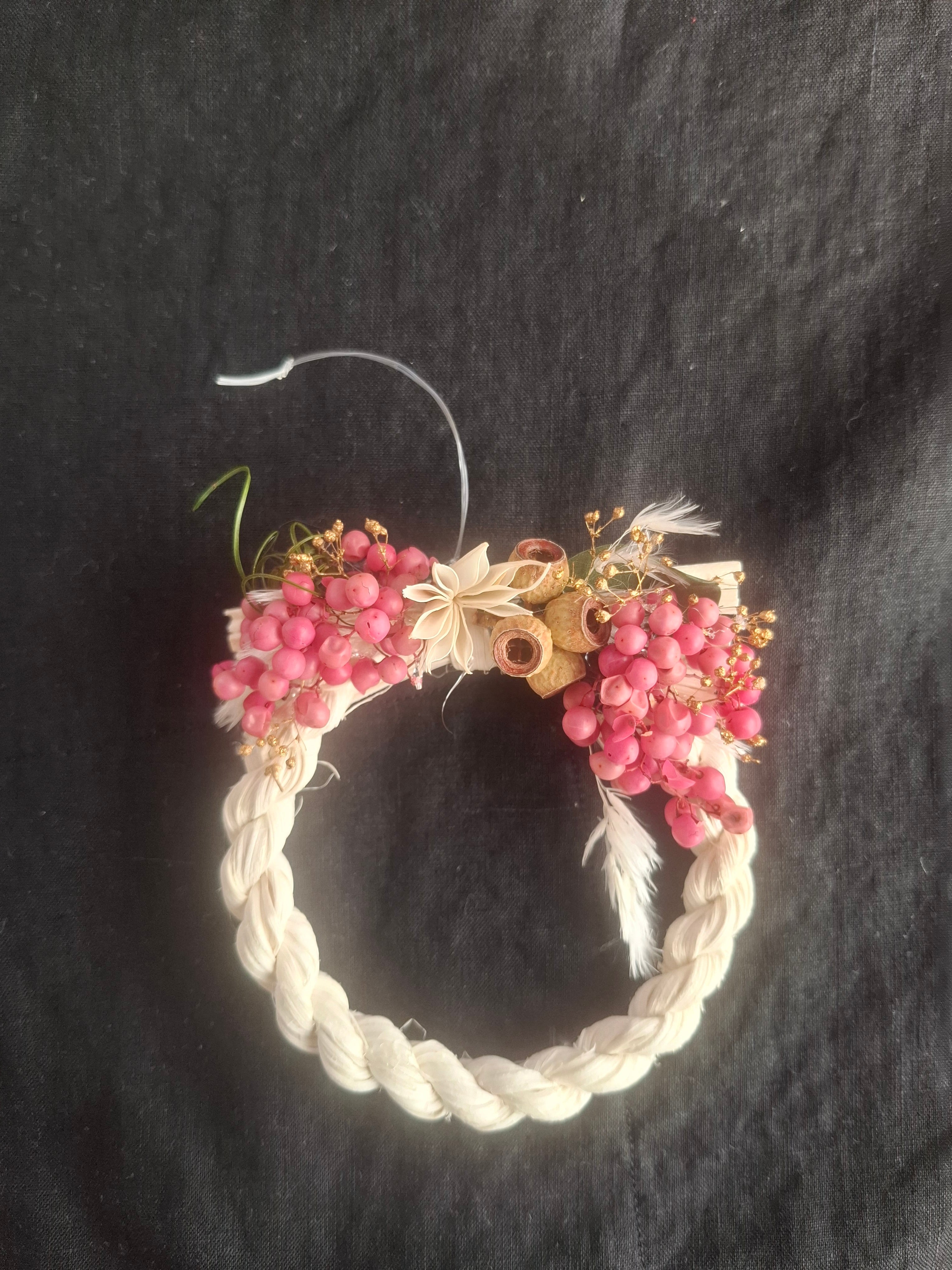 ピンクペッパーベリのラタンお飾り。