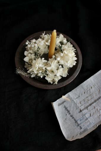 白あじさいリース サイズ:約14×14cm 白あじさいやミモザのつぼみ、レースのような繊細で美しい植物のリースです。 壁に飾るのはもちろん、テーブルに飾るテーブルリースとしてもお楽しみいただけます。