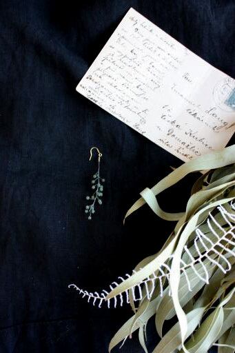 片耳用ピアス5 サイズ:約6×1cm ミモザのつぼみのシンプルピアスです。 本物のお花や葉っぱだからこその可愛さがあります。 またプリザーブドフラワーを使用しているので、とても軽く、着用していることを忘れるほどです。 片耳ピアスとなります。 ひとつだけ着けるとスタイリッシュな雰囲気。 また例えばもう片方の耳には葉っぱのピアスなどを組み合わせても素敵です。 もちろん両耳ともに同じモチーフのピアスも雰囲気があります。