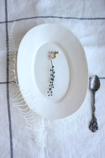 また例えばもう片方の耳には葉っぱのイヤリングなどを組み合わせても素敵です。