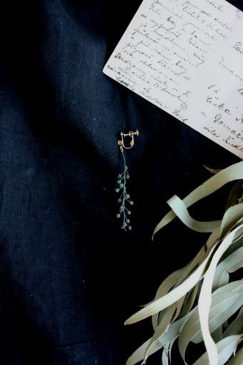 また例えばもう片方の耳には葉っぱのイヤリングなどを組み合わせても素敵です。