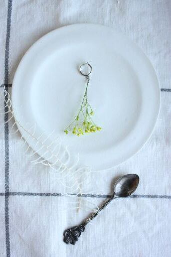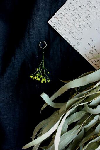 また例えばもう片方の耳には葉っぱのイヤリングなどを組み合わせても素敵です。