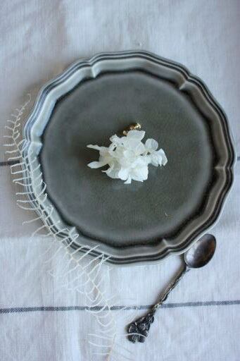 ころんとした形の白いあじさいがお顔の横で揺れるイヤリングです。